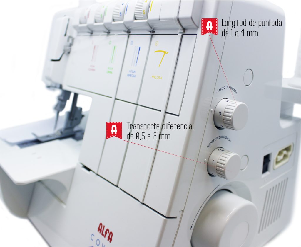• Mando de ajuste de transporte diferencial de 0,5 a 2,0 mm
