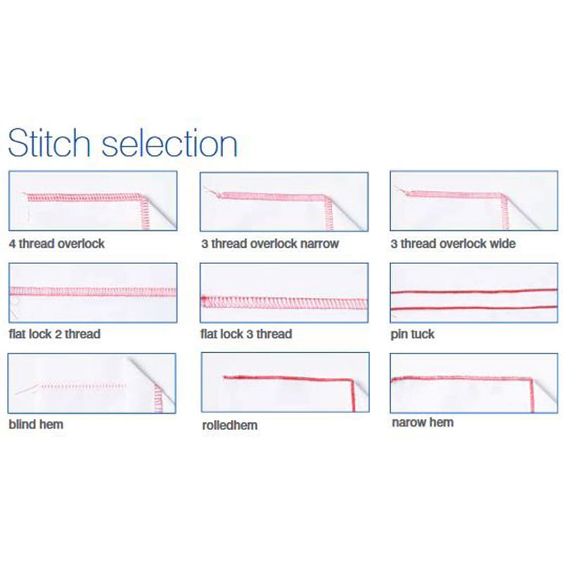 - 2, 3 o 4 hilos, cortar y coser overlock puntadas