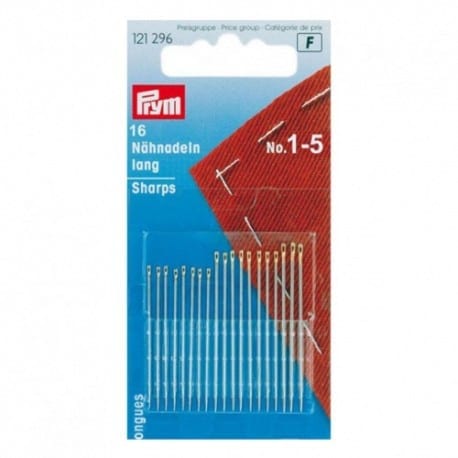Agujas Largas N° 1-5 Estas agujas de coser a mano, largas y medias, están hechas de acero endurecido y tienen un ojo dorado en relieve sin rebabas. Su forma de la punta fina y pulida, junto con la superficie lisa y no porosa, recubierta, puede deslizarse bien a través de todo el material. Agujas de zurcir largas nº 3-9 Agujas de zurcir largas nº 1-5